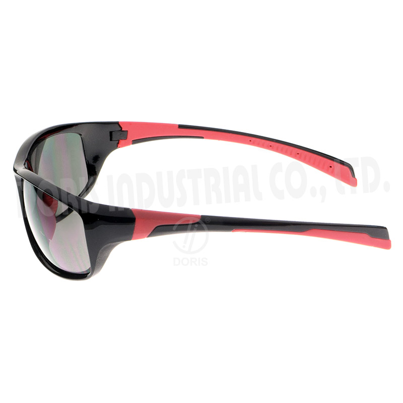 Safety eyewear, large lens coverage with double injected temples for better anti-slip fit and coloration.