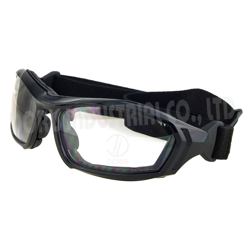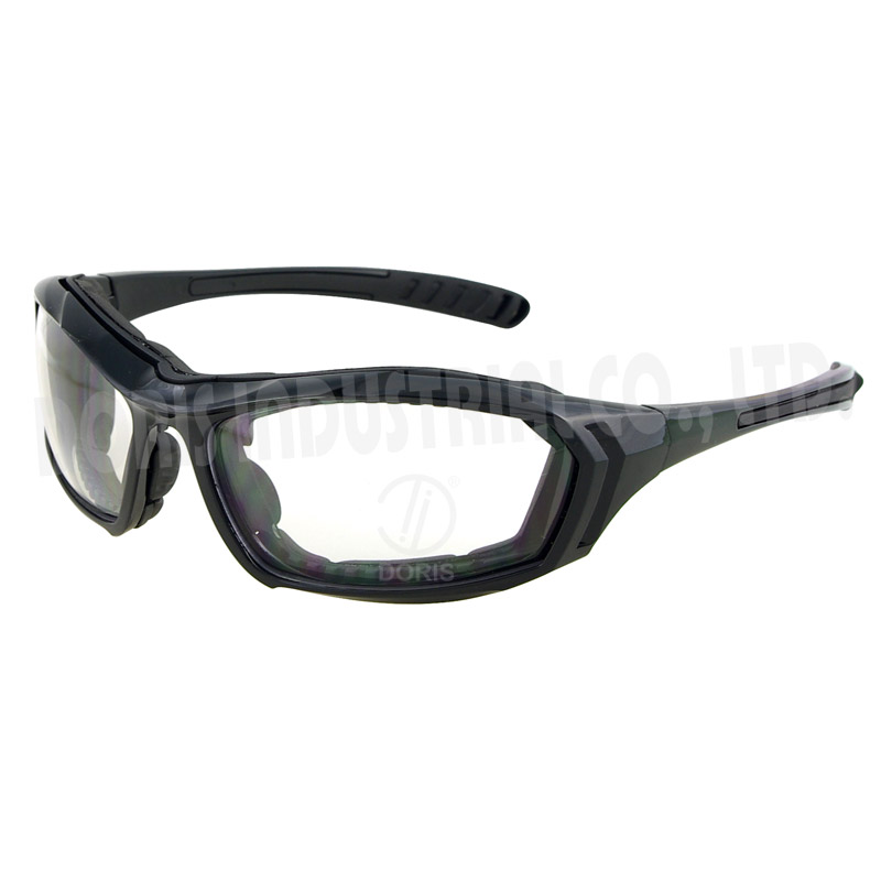 Full frame safety spectacles / goggles or so-called spoggle safety glasses or sproggles with replaceable temples and straps. Both temples and straps are easily interchangeable to convert from a safety spectacles into a compact goggle. Vented eva foam insert to reduce fogging. Dual-injected temples for more comfortable fit
