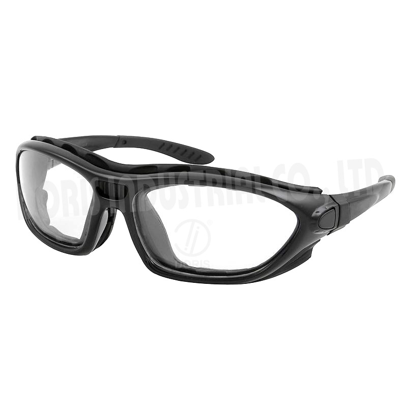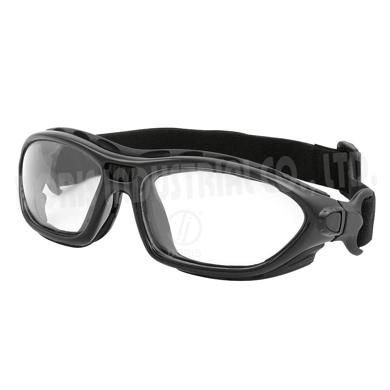 Full frame safety spectacles / goggles with replaceable temples and straps. Temples and straps are interchangeable to change inbetween spectacle and goggle (spoggles / sproggles). Foam inserts also can be replaced