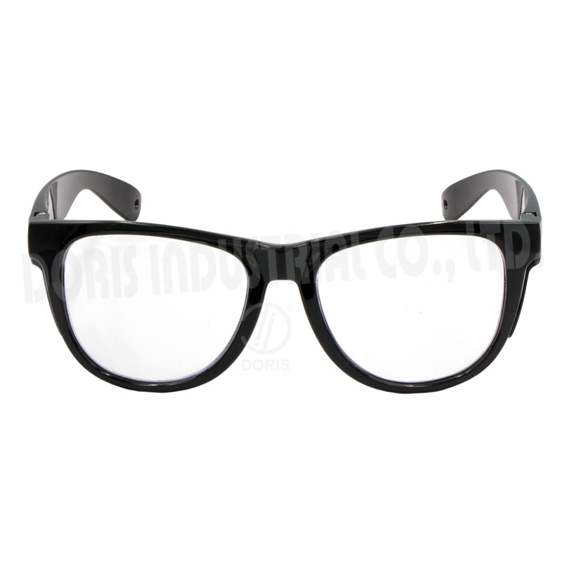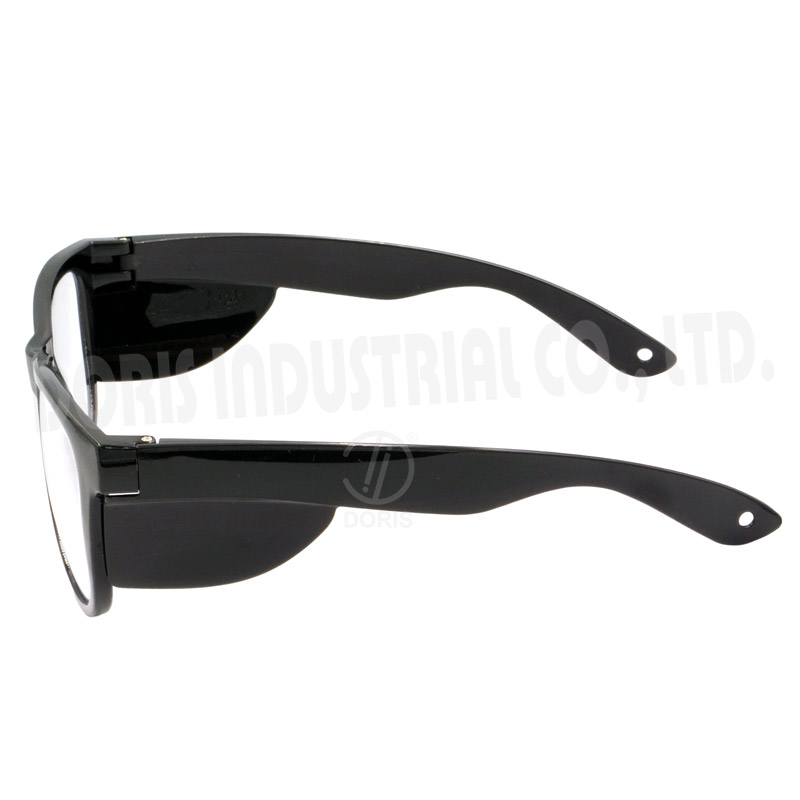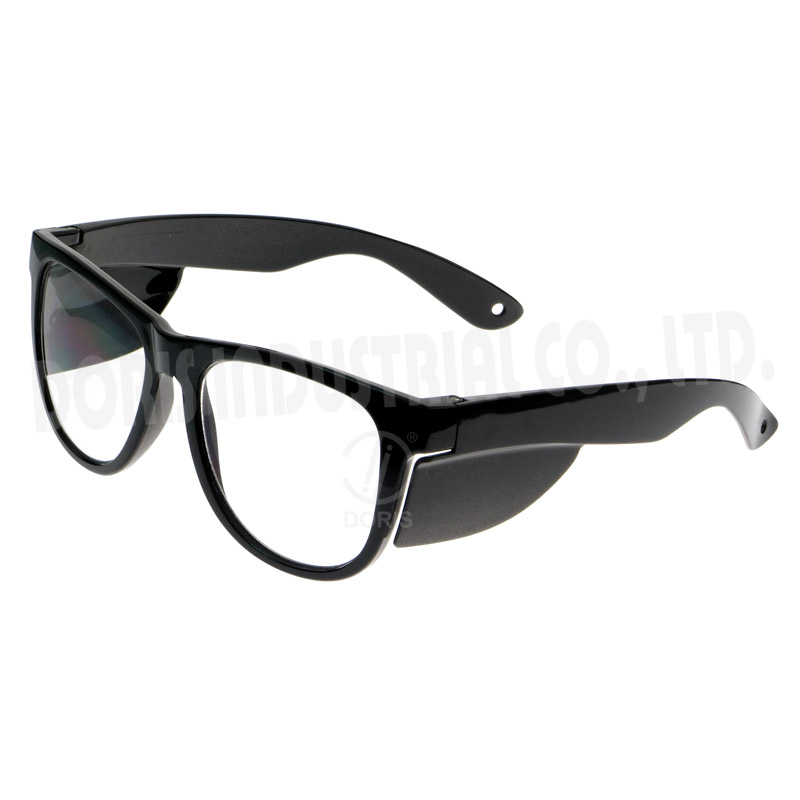 Full frame safety glasses, low base curve frame and side shields provide excellent protection.