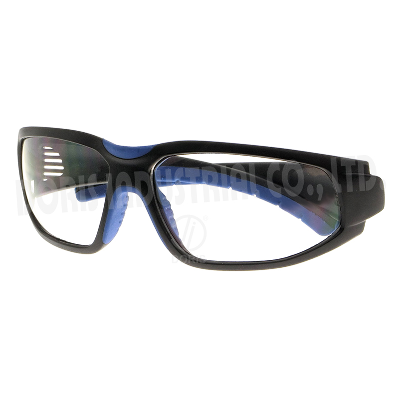 Special designed side vents avaialable for air flow to prevent fogging; dual injected rubberized nose pad and temple ends. Matt finish
