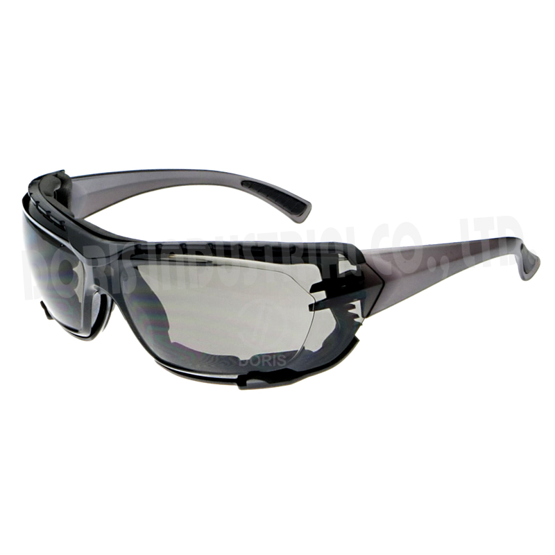 One piece safety eye protective glasses, with removable foam seal for preventing debris and particles from entering with added impact protection.