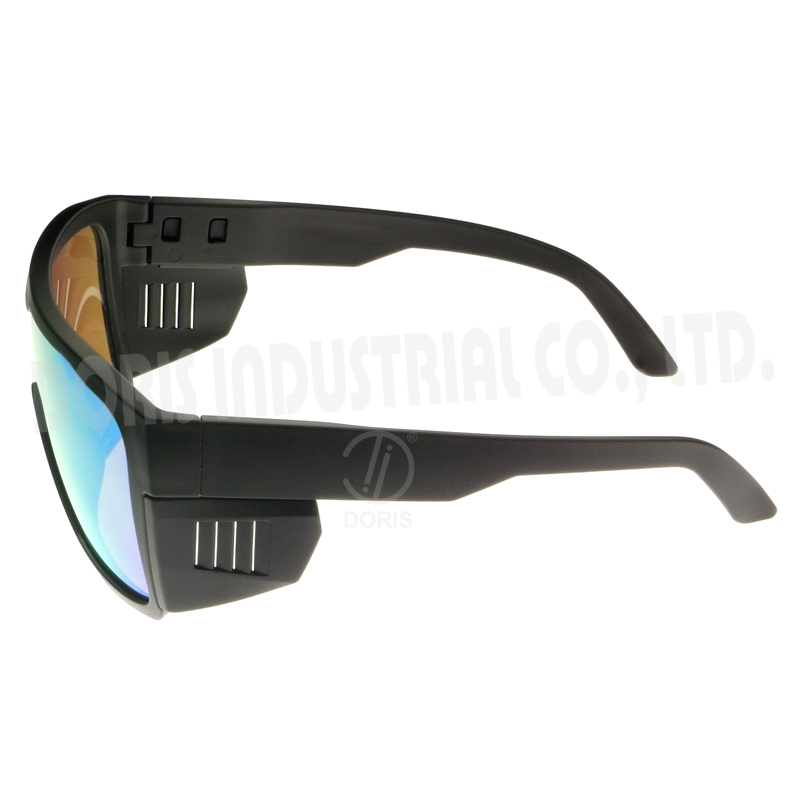 Stylish full frame sunglasses, removable sides shields with ventilation to block direct wind while ventilate air flow to reduce fogging, fend off debris, and add ANSI Z87 side protection.