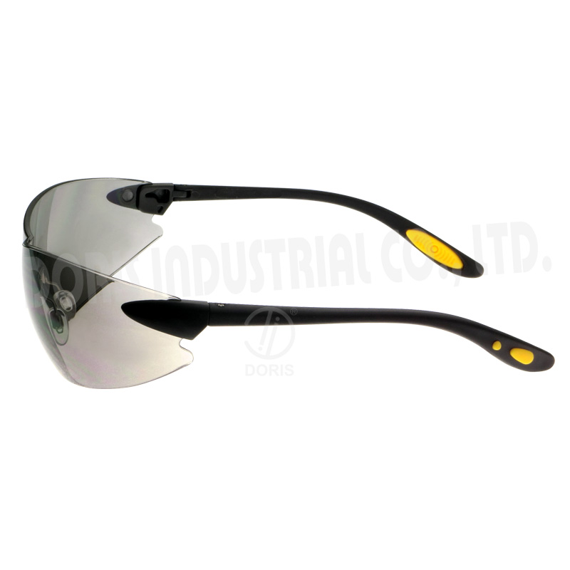 Rimless wrap around safety glasses provide optimum level of eye coverage, adjustable metal nose pads for different facial shapes, rubber temple pads for secure grip.